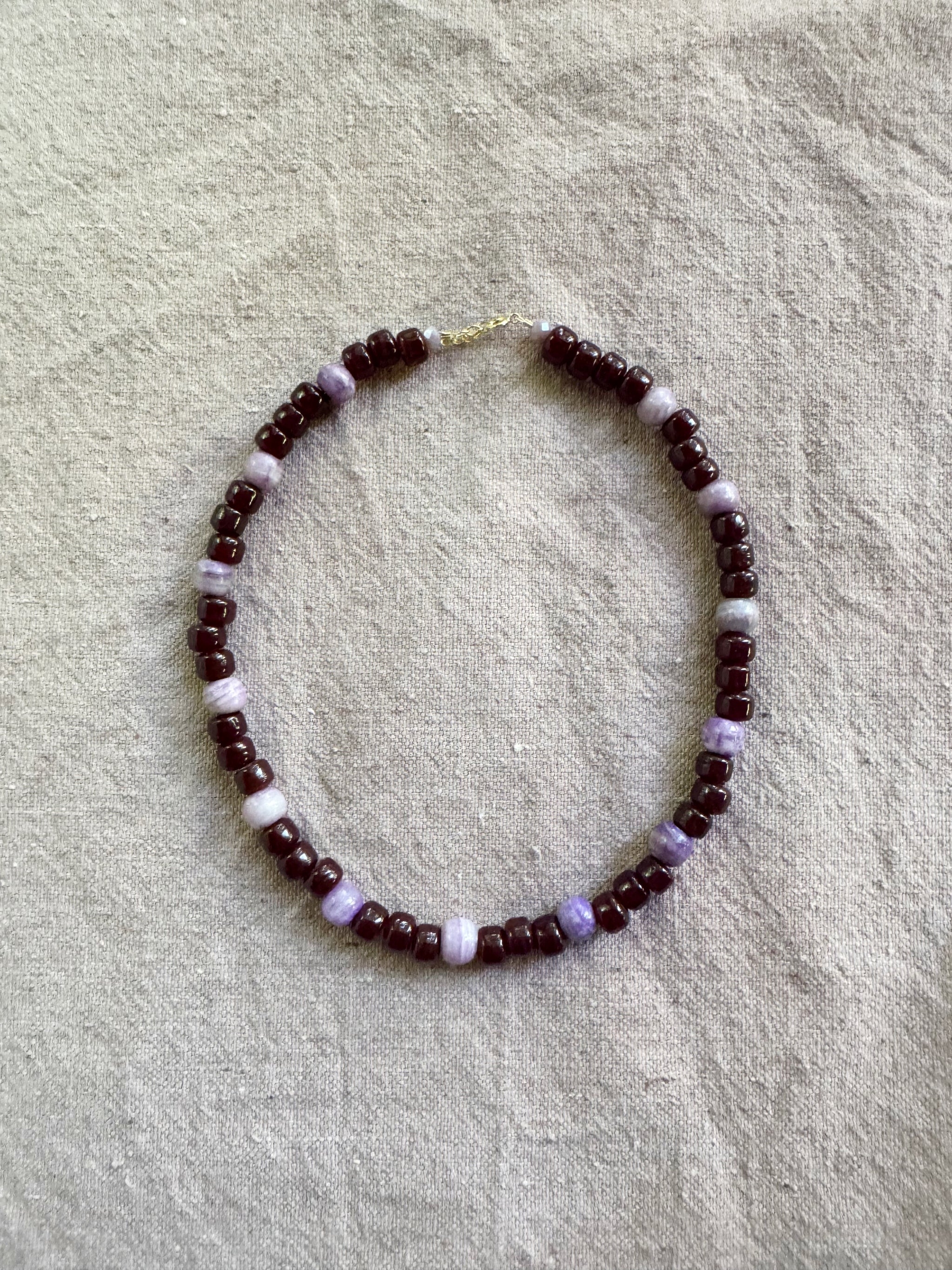 Beaded choker necklace with 14k gold-filled findings. Each necklace is hand crafted. The size, color and shape of the beads may vary making them each special and unique.